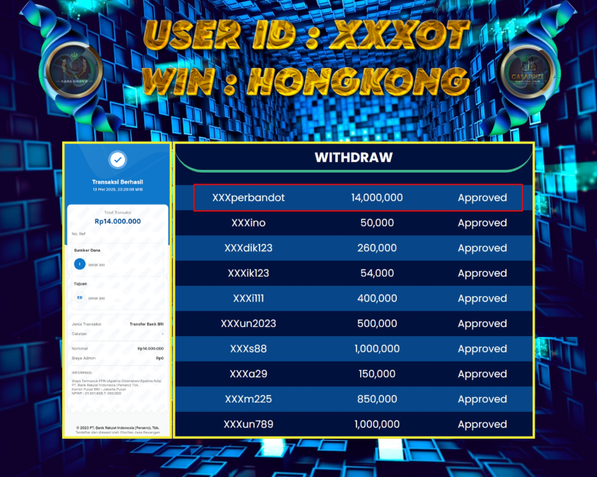 Selamat untuk member yang sudah jackpot dipasaran HONGKONG disitus CASAPRIZE