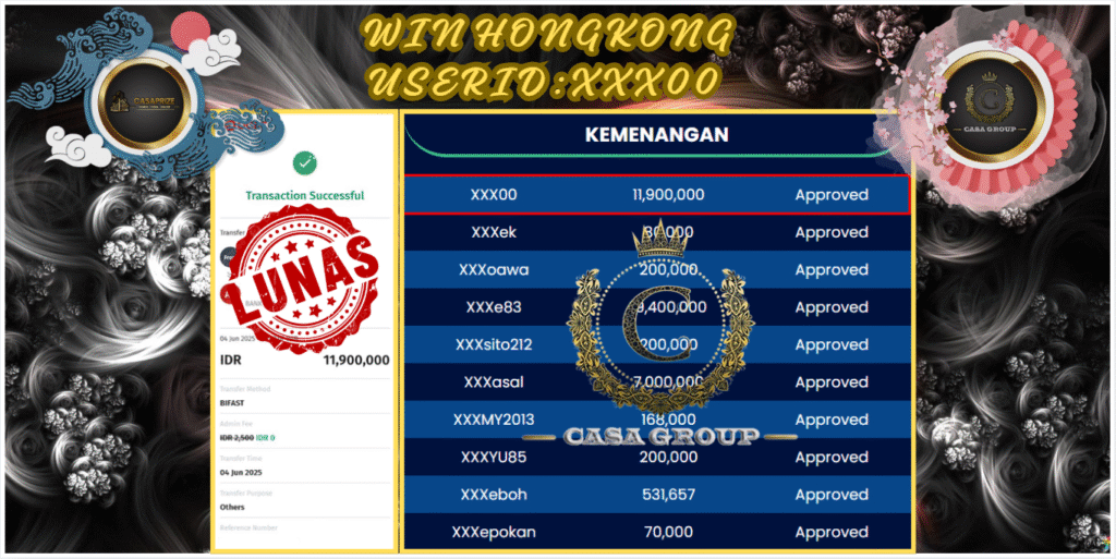 Selamat untuk member yang sudah jackpot dipasaran HONGKONG disitus CASAPRIZE