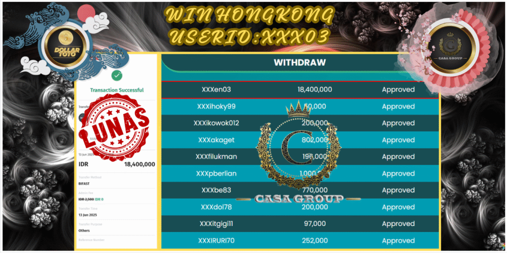 Selamat untuk member yang sudah jackpot dipasaran HONGKONG disitus DOLLARTOTO