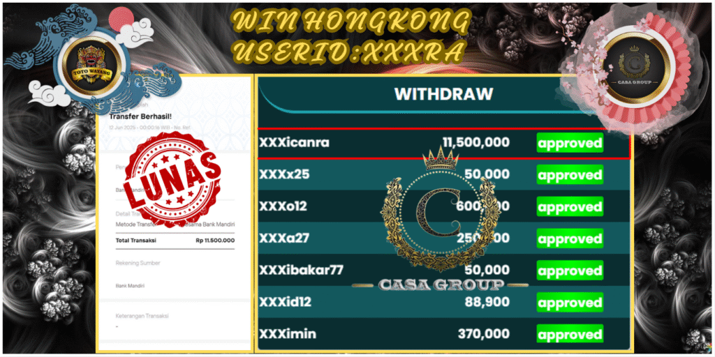 Untuk dana kemenangan sudah langsung dibayar lunas tanpa ribet dan tanpa potongan apapun , bagi member yang belum berhasil mendapatkan jackpott paus jangan berkecil hati ,, langsung saja daftarkan akun anda agar bisa mendapatkan jackpot seperti member – member lainnya.