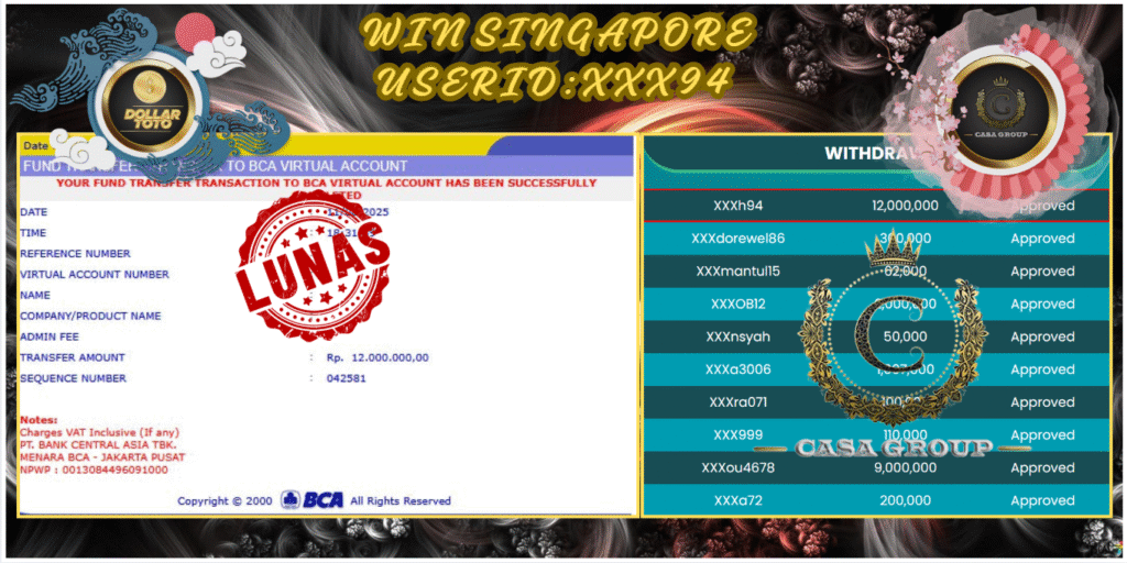 Selamat untuk member yang sudah jackpot dipasaran SINGAPORE disitus DOLLARTOTO