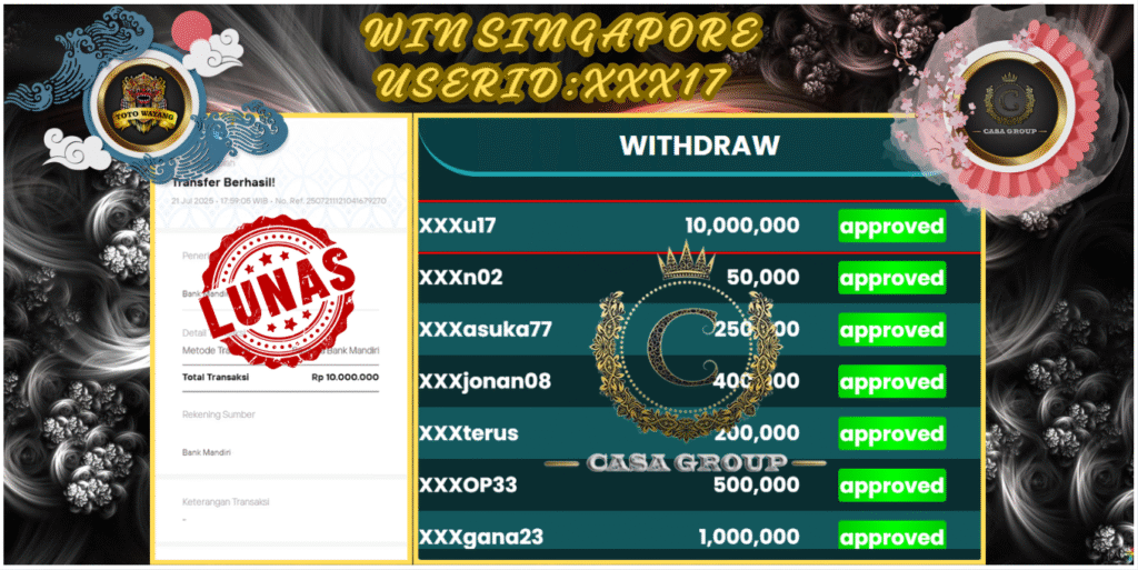 Selamat untuk member yang sudah jackpot dipasaran SINGAPORE disitus TOTOWAYANG