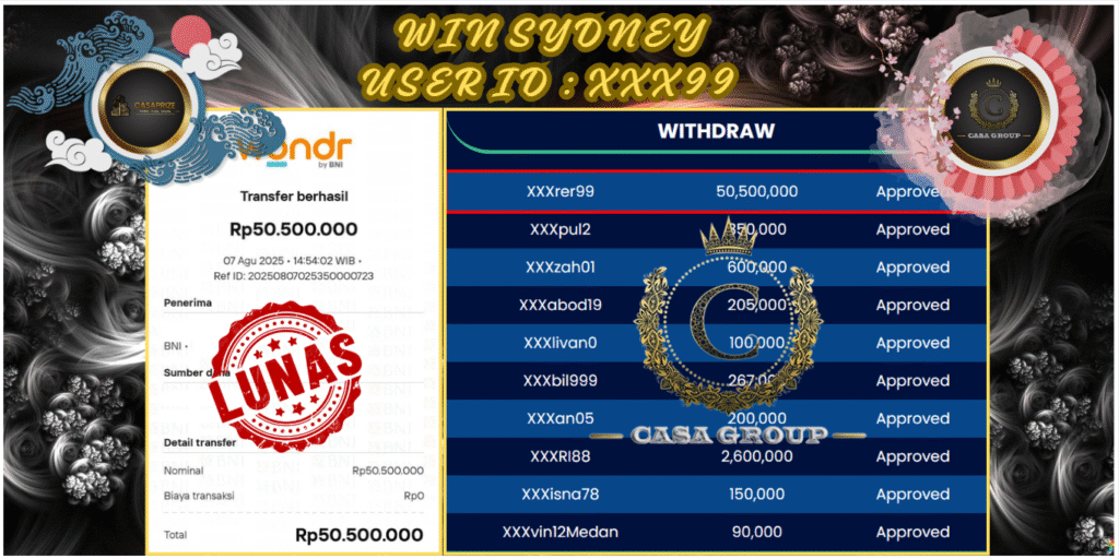 Selamat untuk member yang sudah jackpot dipasaran SYDNEY disitus CASAPRIZE