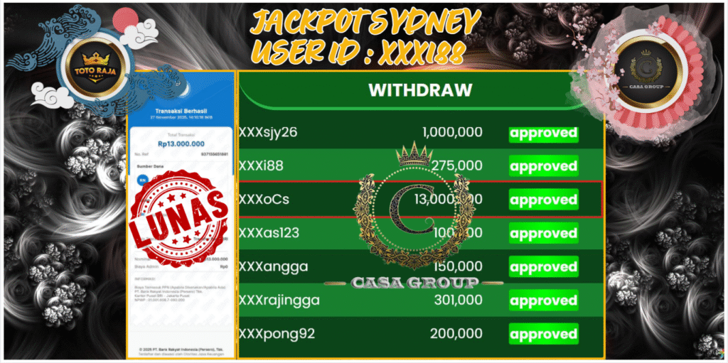 Selamat untuk member yang sudah jackpot dipasaran SYDNEY disitus TOTORAJA