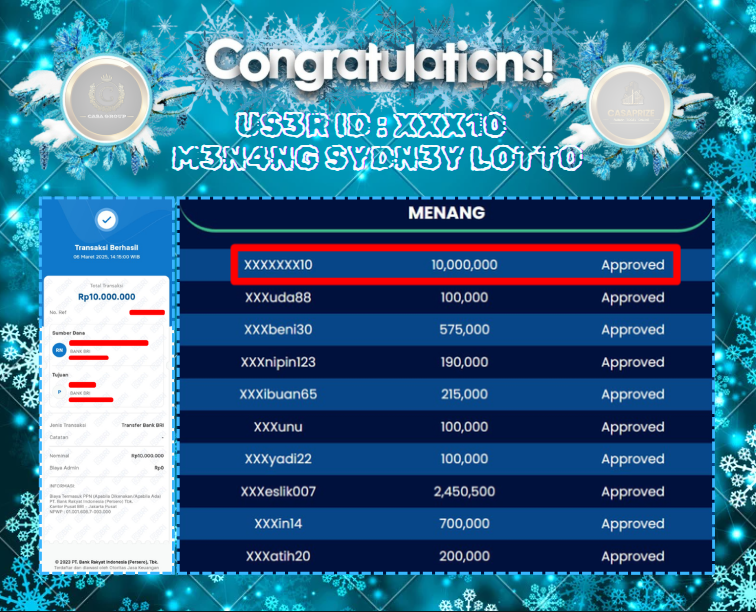 Selamat atas jackpot paus untuk member merdekatoto dengan user id : xxx10 yang telah berhasil menang pada pasaran SYDNEY LOTTO sebesar Rp. 10 .000.000 ,-