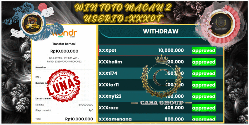 Selamat untuk member yang sudah jackpot dipasaran TOTO MACAU 2 disitus TOTOWAYANG