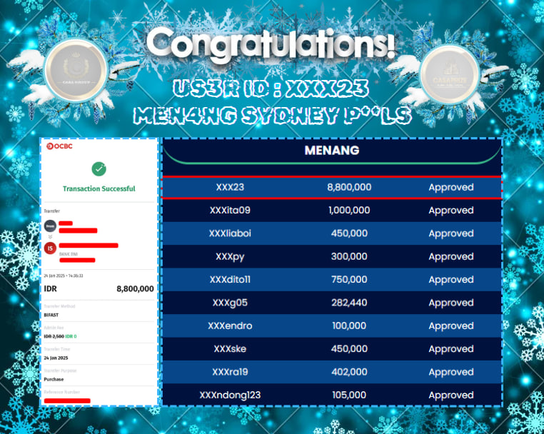 SELAMAT ATAS JACKPOT PAUS UNTUK MEMBER CASAPRIZE DENGAN USER ID : XXX23 YANG TELAH BERHASIL MENANG PADA PASARAN SYDNEY SEBESAR Rp. 8.800.000,-