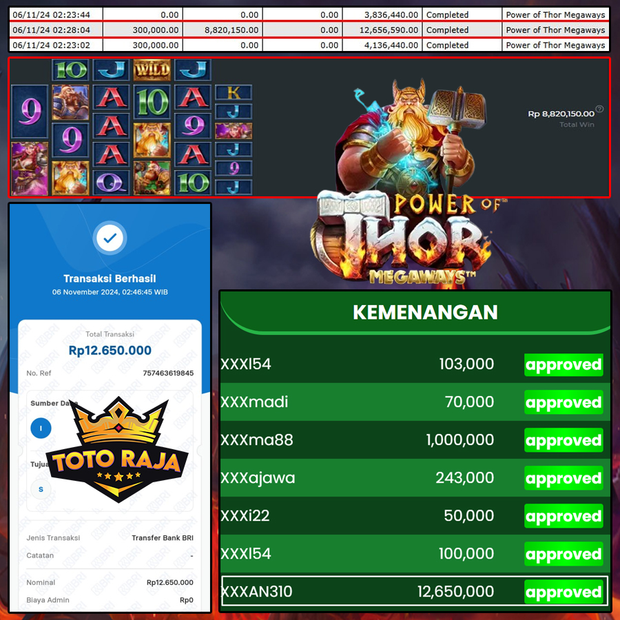 SELAMAT KEPADA MEMBER TOTORAJA, USER ID : XXXN310, MENANG DI GAME PRAGAMATIC SLOT> POWER OF THOR MEGAWAYS