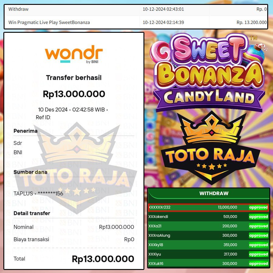 SELAMAT KEPADA MEMBER TOTORAJA USER ID : XXXXXXr232 MENANG DI GAME PRAGMATIC LIVE > SWEET BONANZA CANDYLAND
