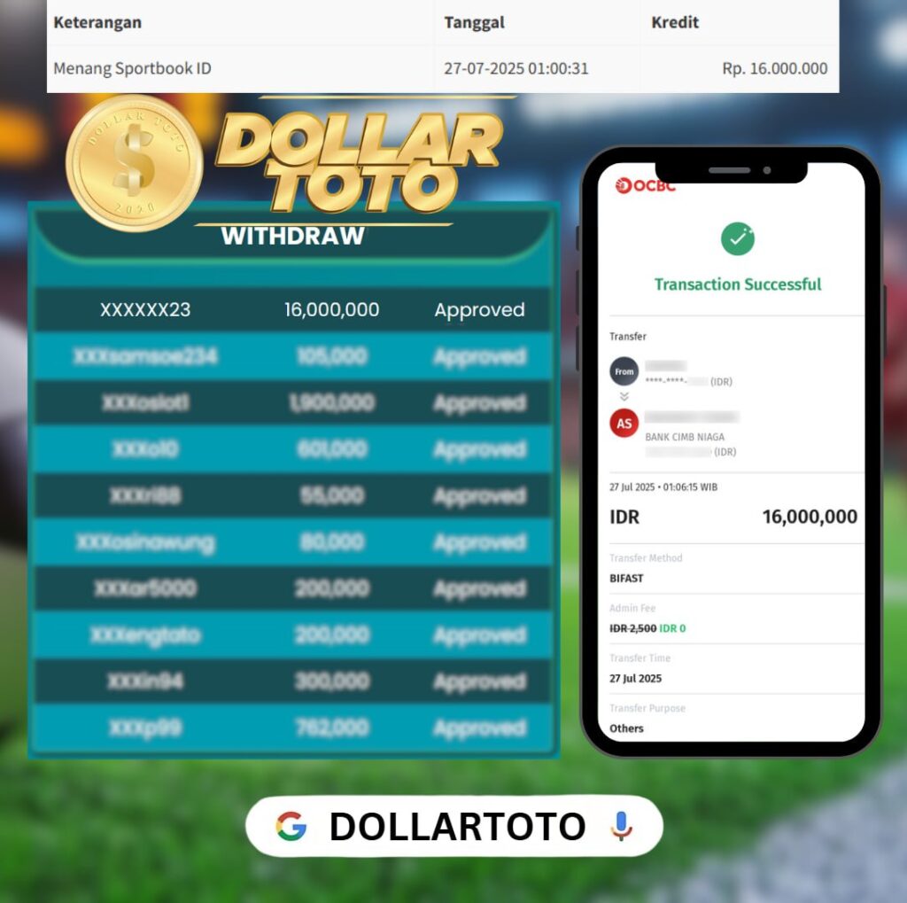 Kemenangan luar biasa di permainan SBOBET lewat DOLLARTOTO akhirnya kembali ke tangan yang tepat