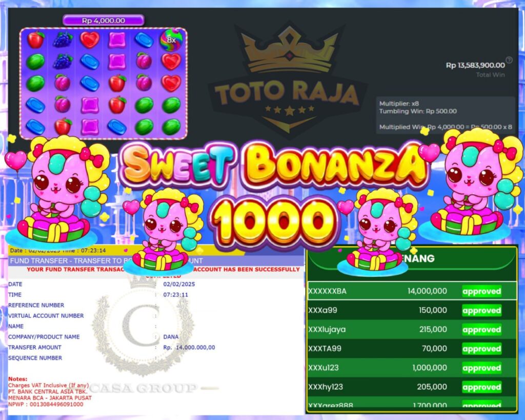 SELAMAT KEPADA MEMBER TOTORAJA DENGAN USER ID XXXXXXBA MENANG DI GAME SWEET BONANZA 1000 >> PRAGMATIC PLAY