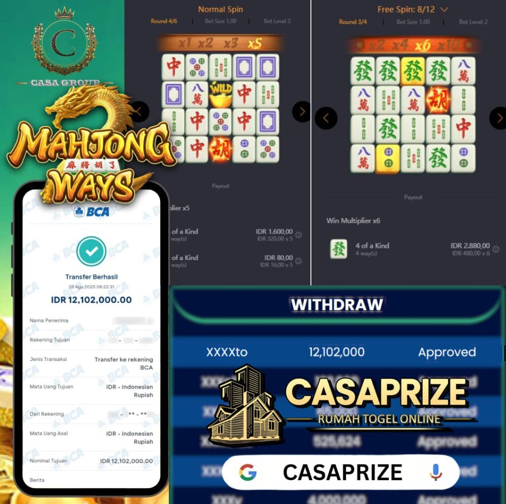 Selamat kepada member setia CASAPRIZE dengan User ID: gXyXtX yang sukses meraih kemenangan SENSATIONAL di permainan MAHJONG WAYS 2 dari PGSOFT.