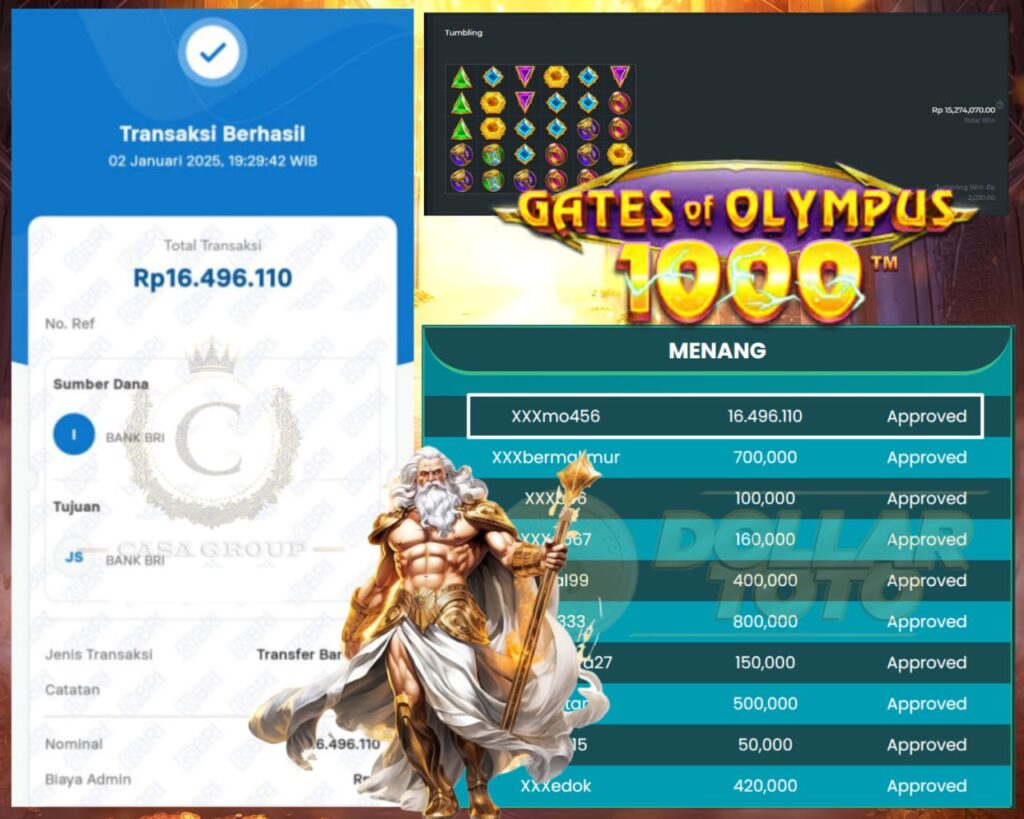 SELAMAT KEPADA MEMBER DOLLARTOTO, USER ID : 𝓧𝓧𝓧𝓧𝓧𝓧56, MENANG DI GAME PRAGMATIC PLAY > GATES OF OLYMPUS 1000