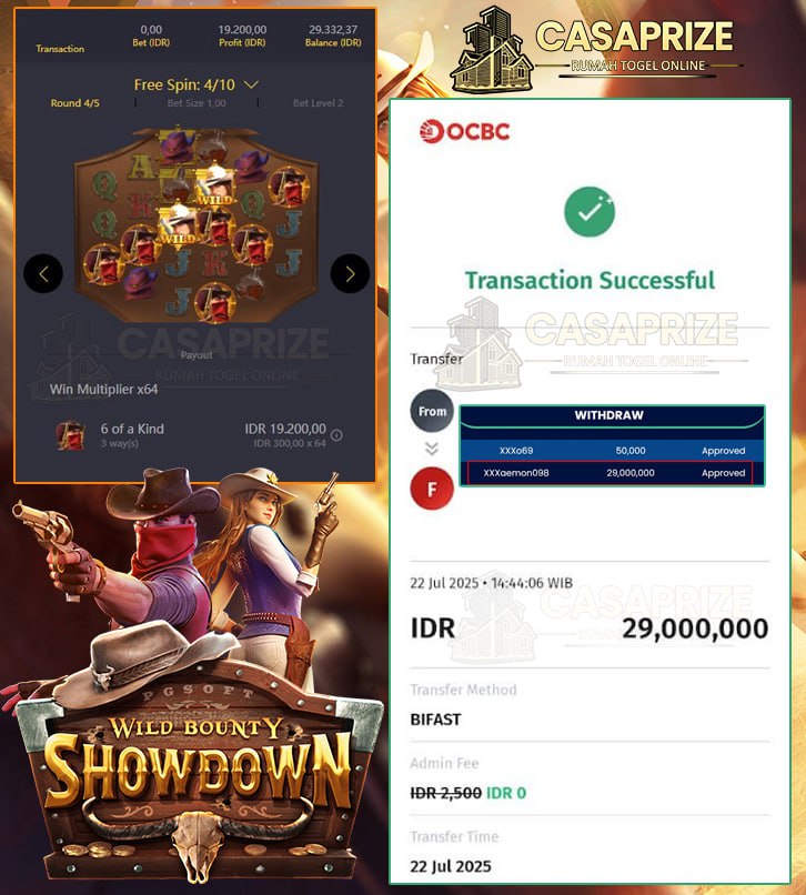 Selamat kepada bosku user id XXXaemon098 yang telah mendapatkan kemenangan besar di game PGSOFT >>WILD BOUNTY SHOWDONW.