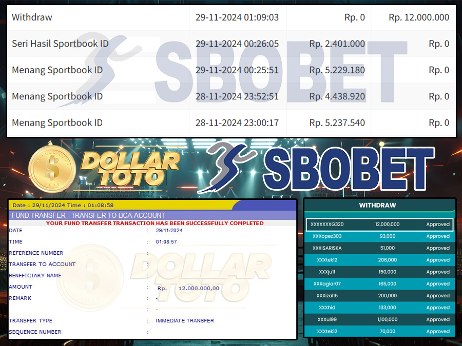 Untuk dana kemenangan sebesar Rp.12.000.000 dana kemenangan sudah berhasil diproseskan tanpa adanya hambatan sedikit pun.