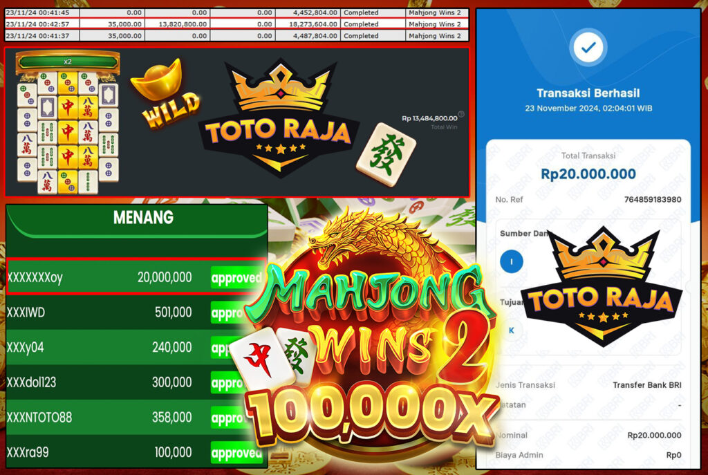 SELAMAT KEPADA MEMBER TOTORAJA, USER ID : XXXXXXroy, MENANG DI GAME PRAGMATIC SLOT > MAHJONG WINS 3 BLACK SCATTER