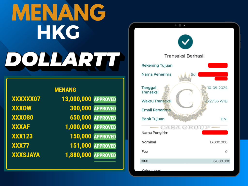 Selamat kepada member kami disitus DOLLARTOTO dengan User ID XXXXXX07 yang sudah JACKPOT di pasaran HONGKONG dengan total kemenangan sebesar 13 Juta dibayar lunas.