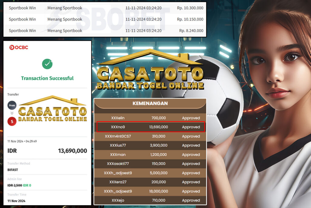 Bagi bosku yang ingin merasakan kemenangan yang sama bisa langsung segera mendaftarkan akunnya di >>CASAGROUP.