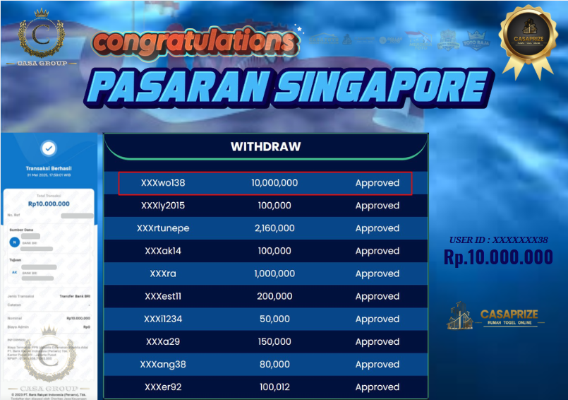 WOW CUAN LAGI DARI BET SINGAPORE DI SITUS CASAPRIZE