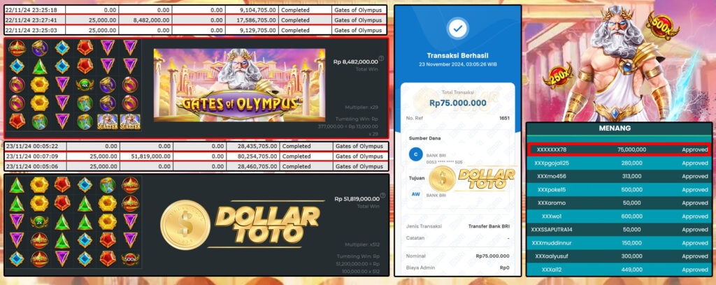 ZEUS TERBANTAI HABIS DI DOLLARTOTO!! WIN 75JT BOSKU!!